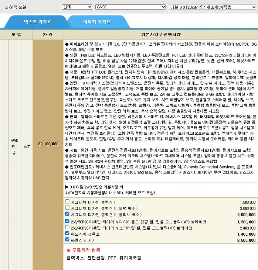 ▶ 차종 및 등급 : GV80 디젤 3.0 AWD 5인승 ( 2022MY )