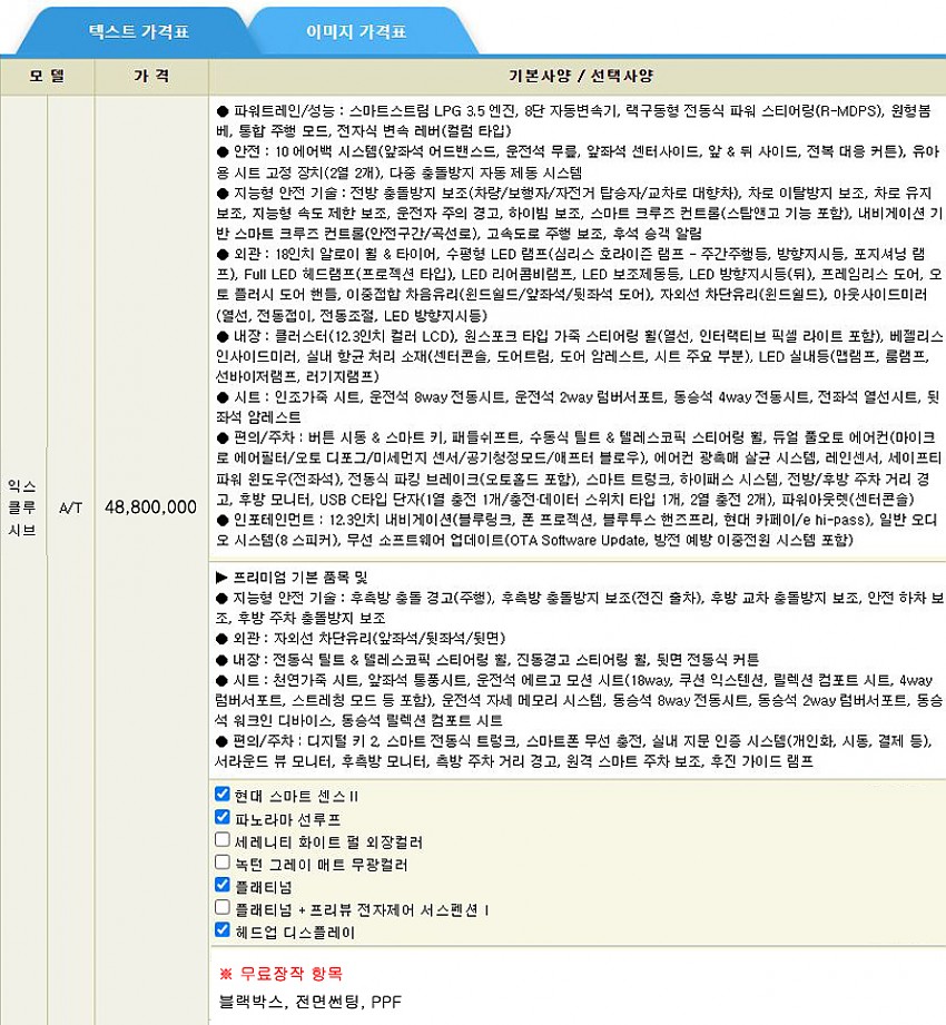 플래티넘 + 헤드업디스플레이 등 / 전면썬팅 등 (아래 옵션사항 참조)