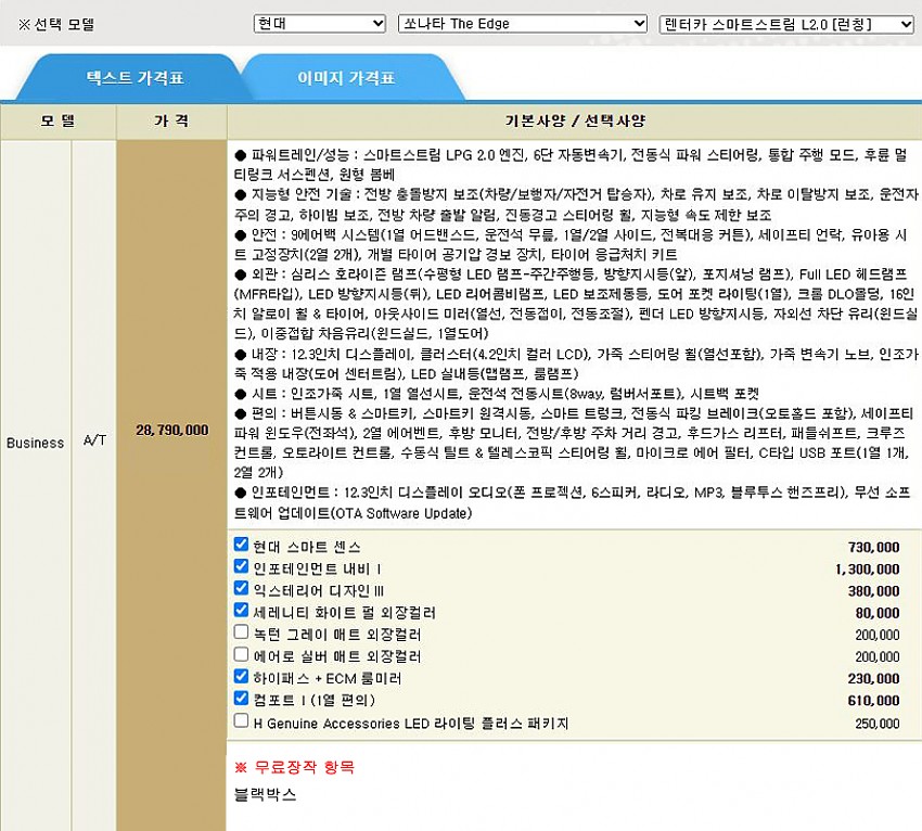 ▶ 차종 및 등급 : 쏘나타 The Edge 렌터카 스마트스트림 L 2.0 비지니스 1