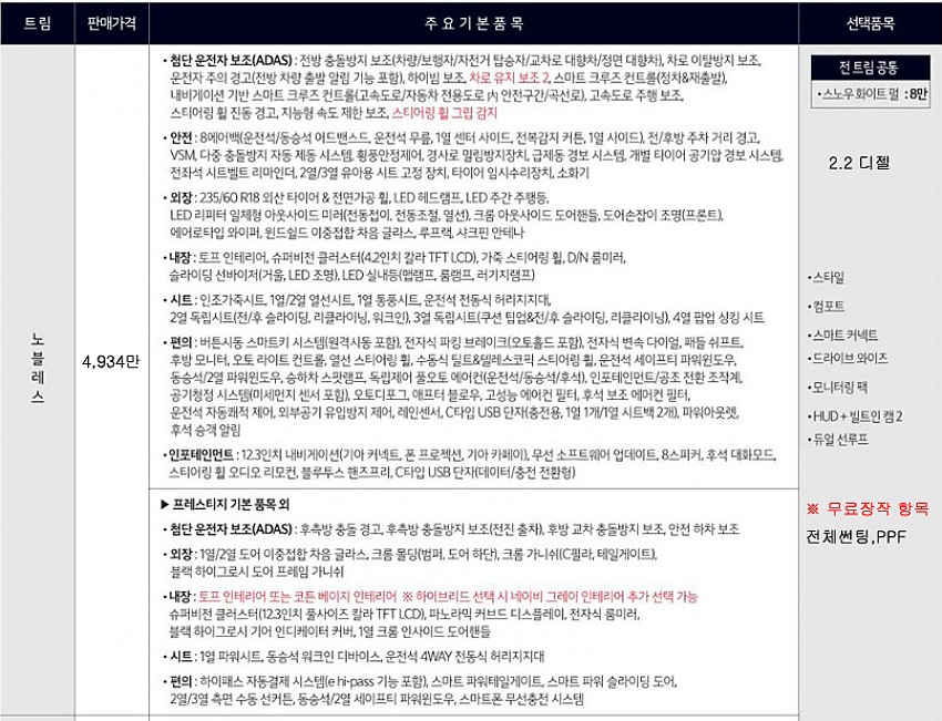 컴포트 등 / 전체썬팅 등 (아래 옵션사항 참조)