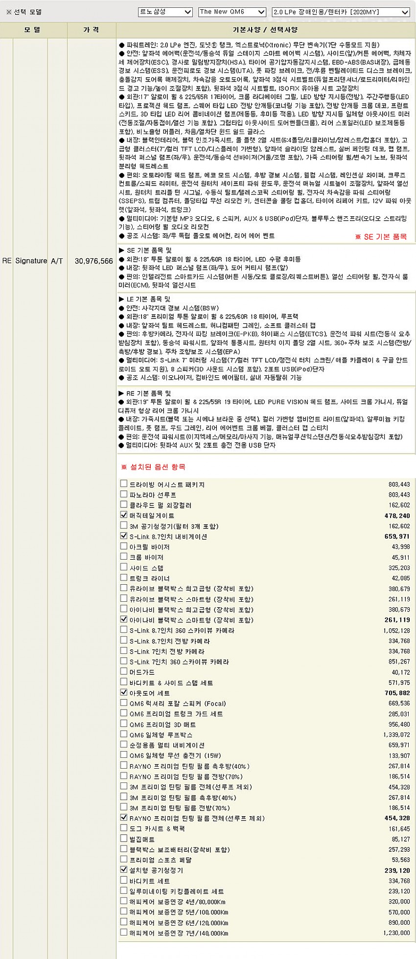 ▶ 차종 및 등급 : 르노삼성 QM6 2.0 LPe 2WD / RE SIGNATURE [2020MY]
