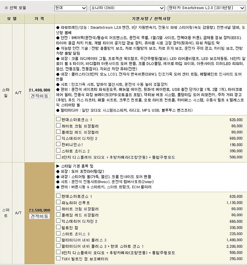 ▶ 차종 및 등급 : 현대 쏘나타(DN8) / 스마트 AT