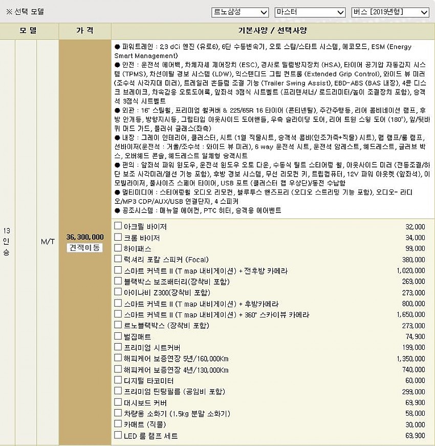 ▶ 차종 및 등급 : 르노삼성 마스터 버스 13인승_ M/T
