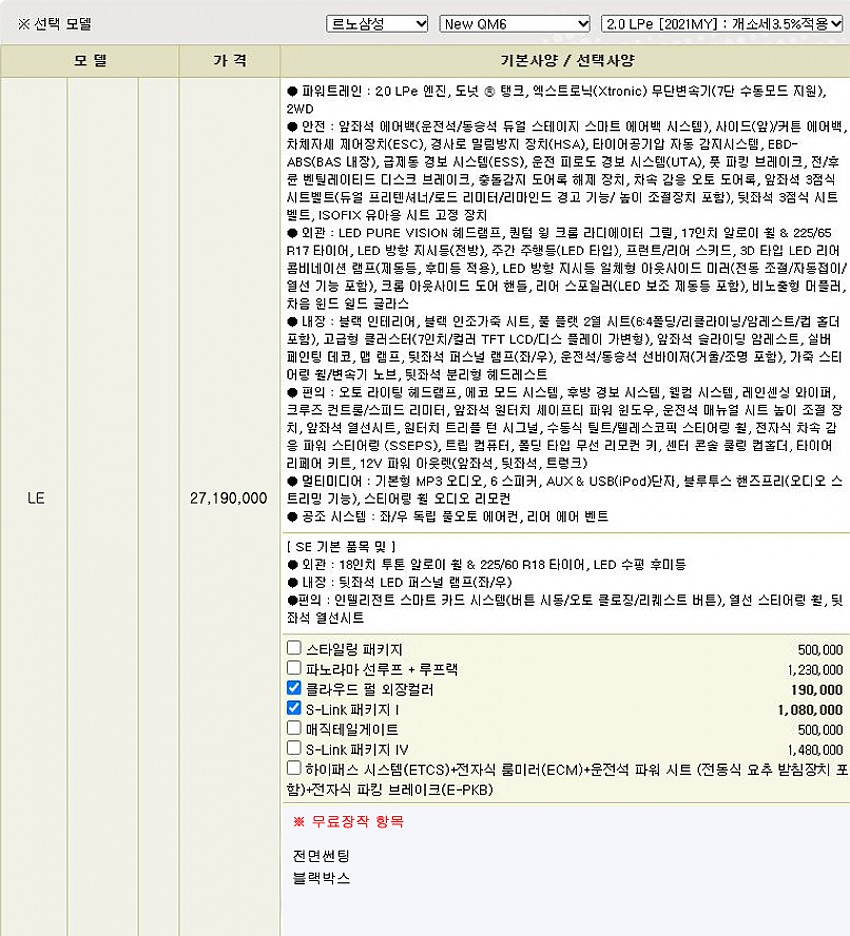 ▶ 차종 및 등급 : 르노삼성 NEW QM6 2.0 LPe / LE [2020MY]