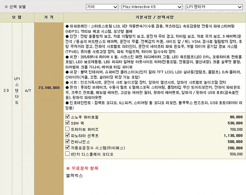 파노라마 썬루프+컨비니언스 등 / 블랙박스 (아래 옵션사항 참조)