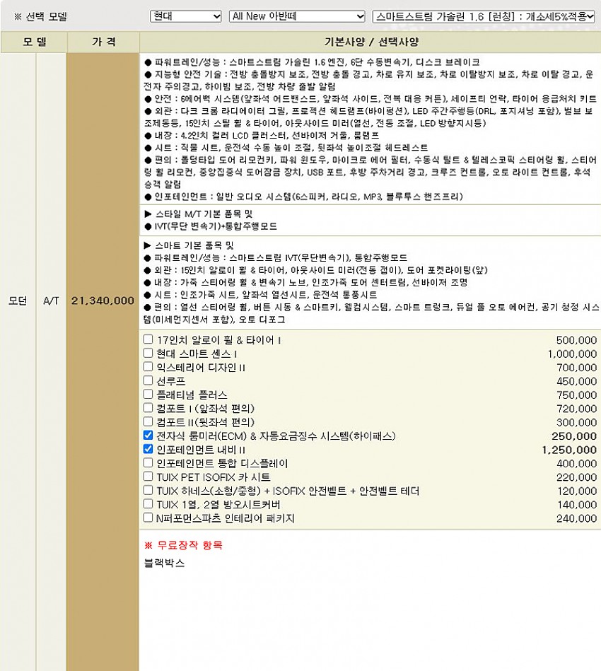 ▶ 차종 및 등급 : 현대 All New 아반떼 스마트스트림 가솔린 1.6 / 모던