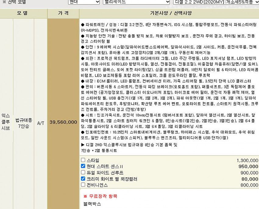 ▶ 차종 및 등급 : 현대 팰리세이드 2.2 디젤 2WD_7인승 / 익스클루시브