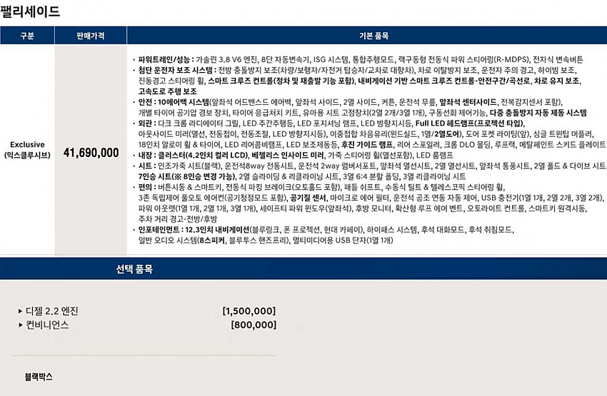 ▶ 차종 및 등급 : 더뉴팰리세이드 2.2 디젤 2WD / 익스클루시브 등급