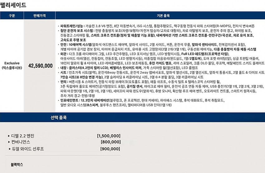 ▶ 차종 및 등급 : 더뉴팰리세이드 2.2 디젤 2WD 7인승 / 익스클루시브 등급