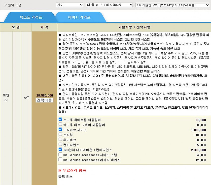 ▶ 차종 및 등급 : 디 올 뉴 스포티지 1.6 가솔린_2WD 트렌디 (2023MY)