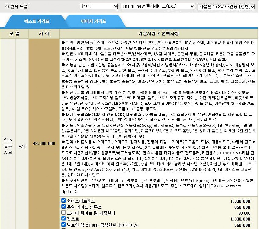 ▶ 차종 및 등급 : 더 올 뉴 팰리세이드 가솔린 2.5_2WD_9인승 익스클루시브