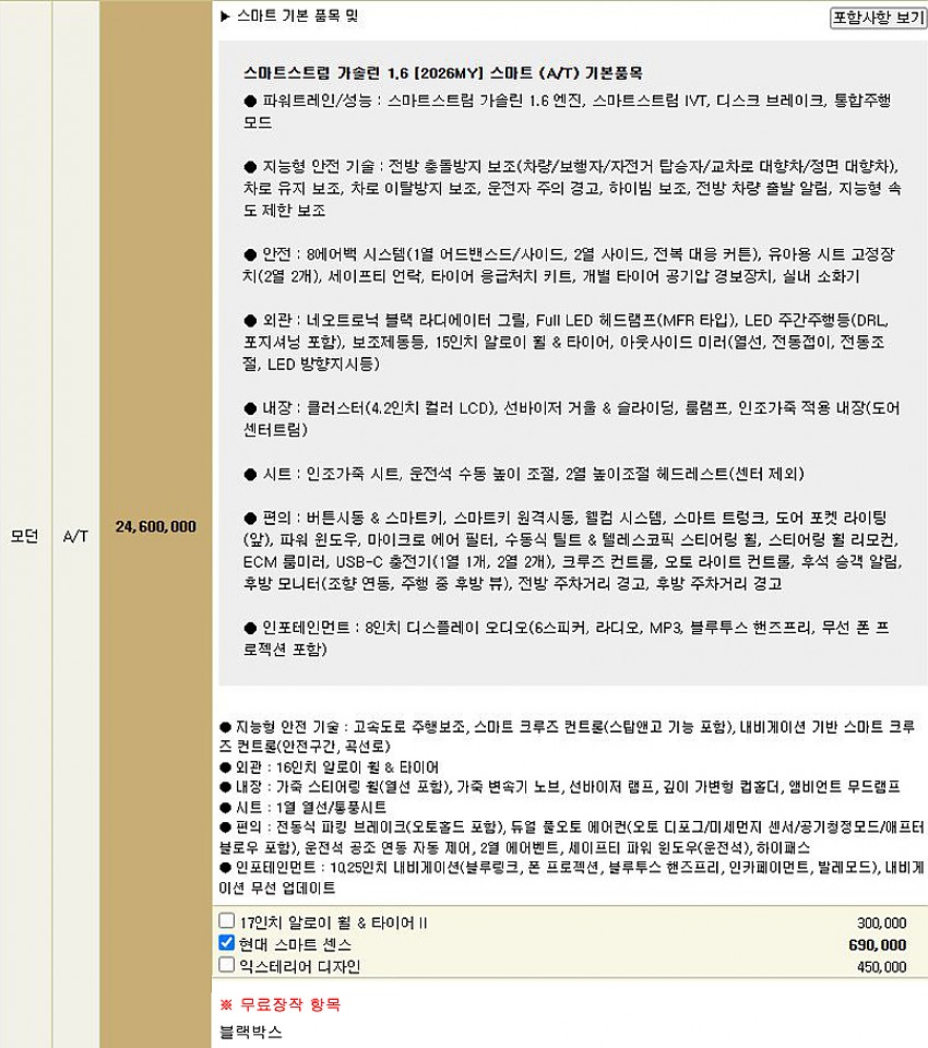 ※무상옵션 및 기본 장착 항목
