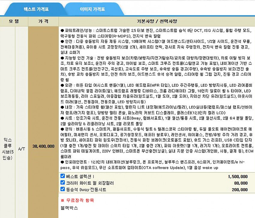 ▶ 색상 및 연료 : 크리미 화이트펄 (내장 : 블랙 ) / 가솔린