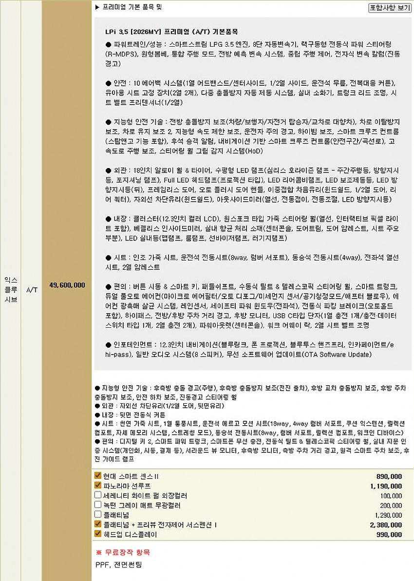 ▶ 차종 및 등급 : 더 올 뉴 그랜저 LPi 3.5_익스클루시브_26MY