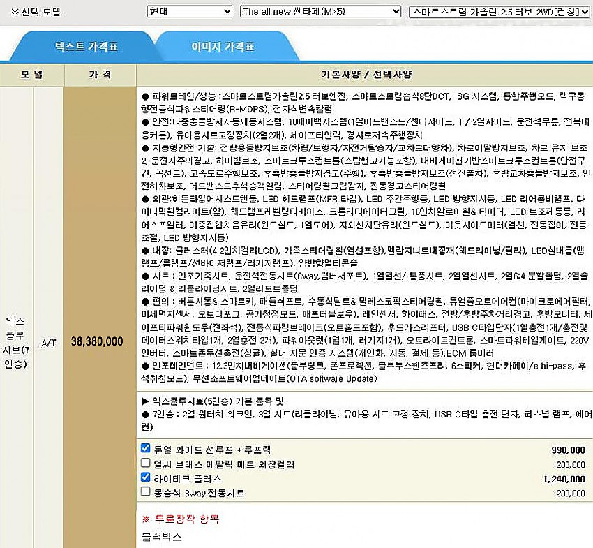 ▶ 차종 및 등급 : 싼타페 가솔린 2.5 T 2WD 7인승 익스클루시브