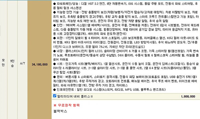 멀티미디어 내비 플러스 || / 블랙박스 (아래 옵션사항 참조)
