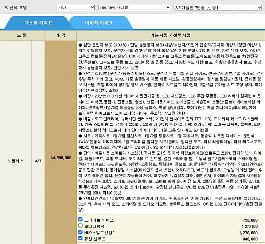 ▶ 차종 및 등급 : 더 뉴 카니발 3.5 가솔린 7인승 노블레스