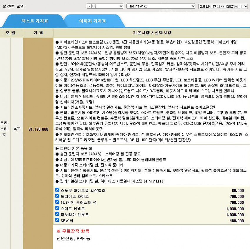 ▶ 차종 및 등급 : 기아 더 뉴 K5 2.0 LPI_렌터카_프레스티지 24MY