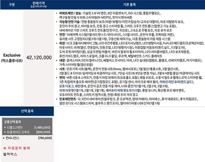※무상옵션 및 기본 장착 항목