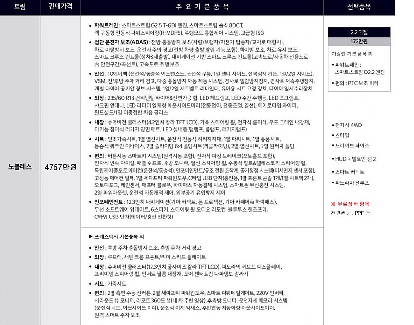 ※무상옵션 및 기본 장착 항목