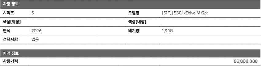 ▶ 차종 및 등급 : BMW_530i xDrive_M Spt_26MY